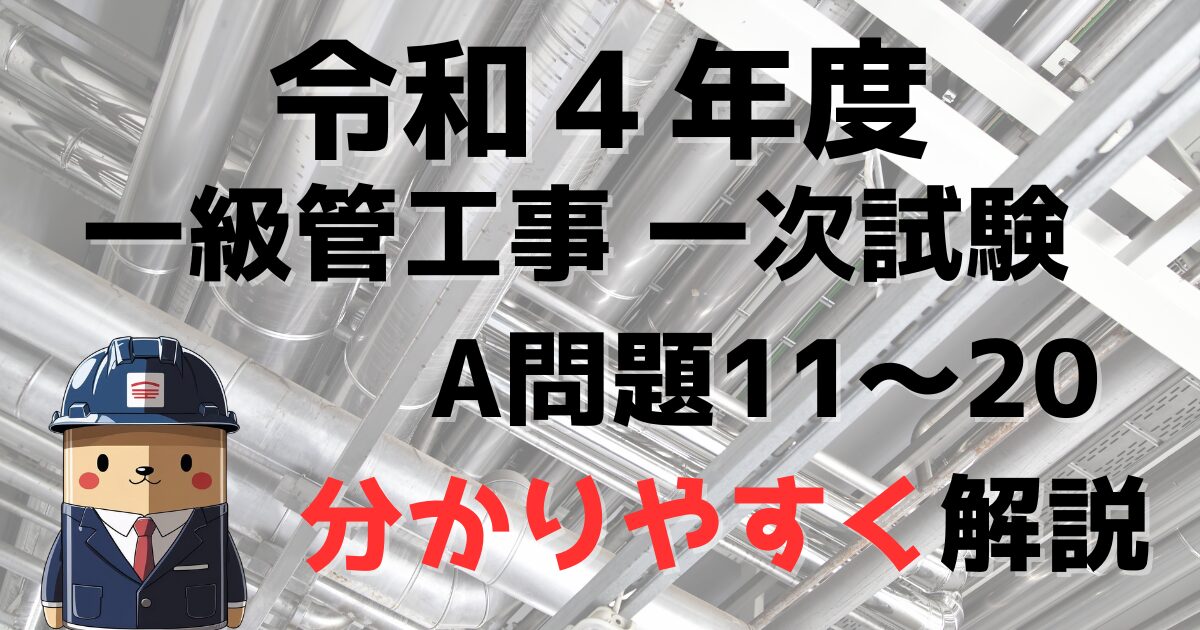 【令和4年度】一級管工事施工管理技士の過去問と解説【一次検定A⑪〜⑳】