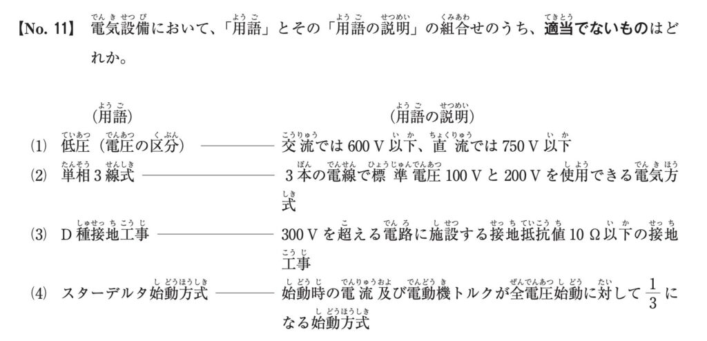 問題:低圧(電圧の区分) ▶交流では600V以下、直流では750V以下