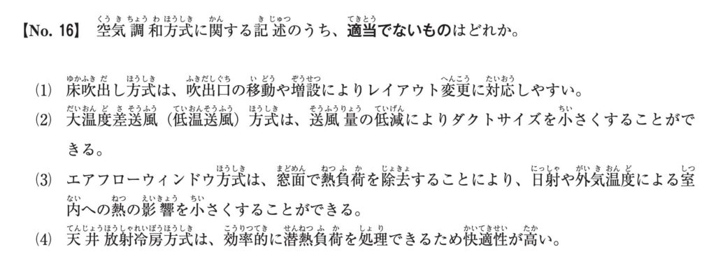 問題:店情報者冷房方式は、効率的にせんねえつ負荷を処理できるため快適性が高い。